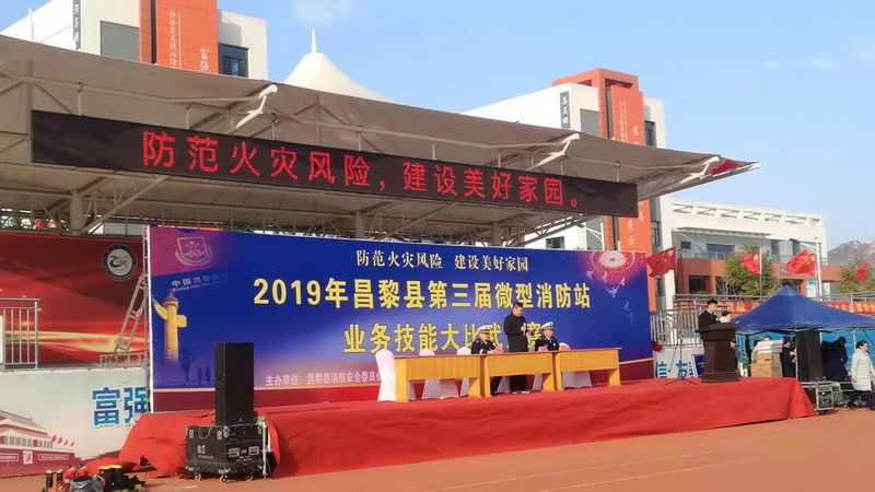 为进一步加强微型消防站队伍建设,全面检验实战训练成果,11月13日,县消防救援大队举办了 "2019年昌黎县第三届微型消防站业务技能大比武竞赛" 。常务副县长张贵田、县消防救援大队大队长于思洋、县消防救援大队教导员黄付堂应邀参加了本次大比武活动,张副县长做了开场致辞。