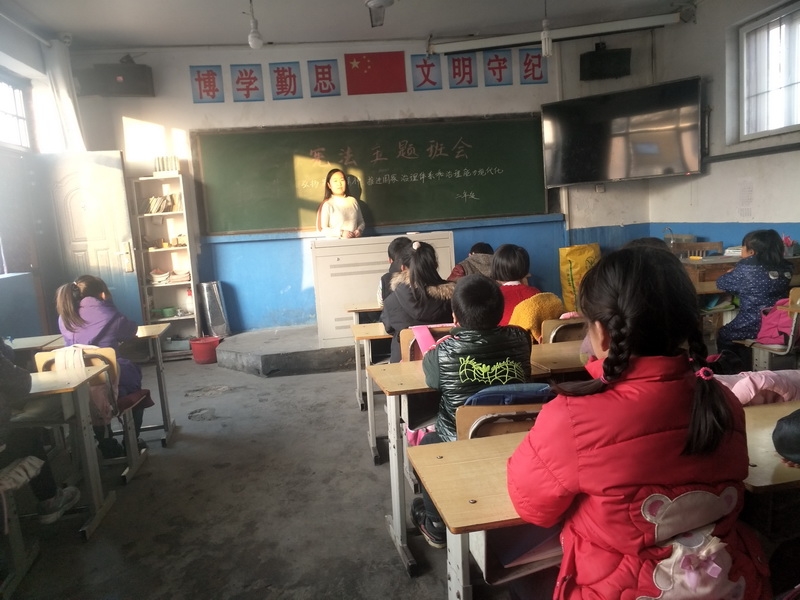 2019年12月4日,各班级召开了一次宪法主题班会课。各班法治教师以《宪法知识读本》为教材,按照授课进度上一节正规的法治课。