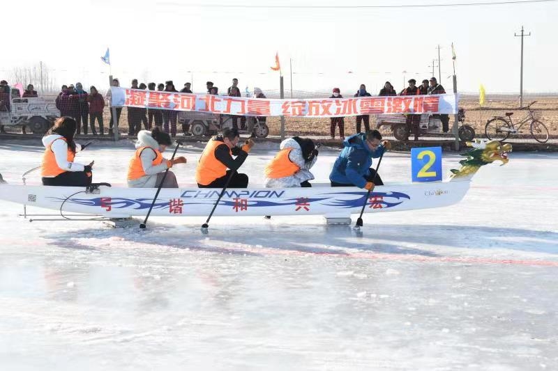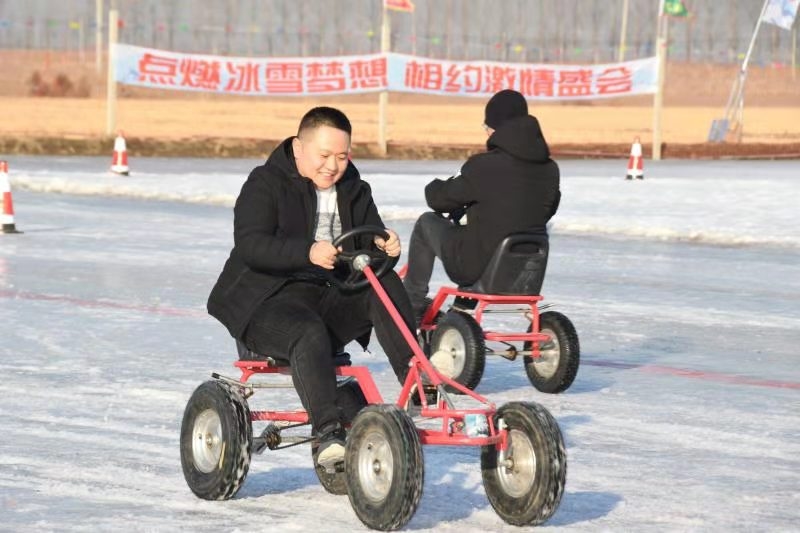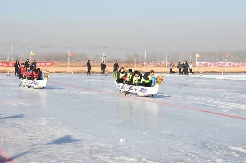 本次冰雪运动会,由县政府主办,县委宣传部、县直机关工委、县总工会、县教育体育局、县旅游文广局、刘台庄镇、县体育发展中心承办,共历时3天,包括青少年组、职工组、教职工组等三个部分举行,比赛共包含冰上龙舟、冰车接龙、冰上自行车、雪地拉圈等4个团队项目,2000余人参与。全县广大干部职工和师生积极踊跃参加,体现了我县广大干部职工对冰雪运动的热情和对我县冰雪运动发展的支持。冰上龙舟赛,口号洪亮,齐心协力,奋力拼搏,勇争第一!雪地拉圈,不仅是奔跑速度的较量,也是力量的对抗,各组选手为了赢得胜利,都派出了最佳搭档,拿出了自己的看家本领,博得大家的喝彩,把比赛一次次推向高潮。冰上自行车,是考验参赛队员的平衡力和驾驭自行车的能力。冰车接龙,是耐力、速度和平衡能力的综合体验。裁判员队伍,不畏严寒,恪尽职守,公平公正,确保比赛顺利完成。体验项目,是冰雪爱好者的乐趣。