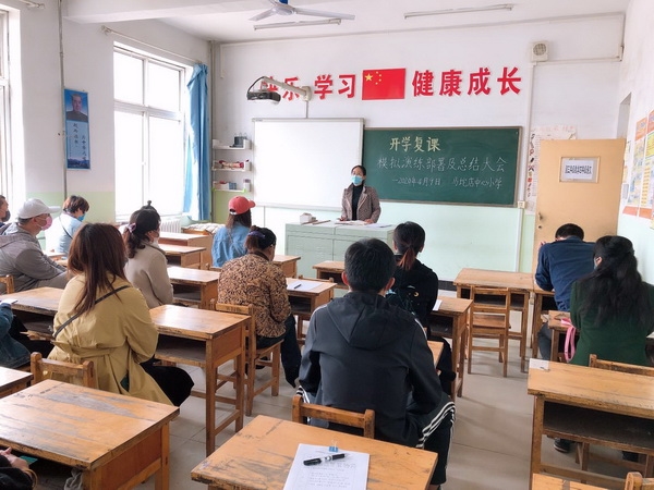 10:50复学模拟演练结束。张延奎主任针对如何做好复课后的日常检测及消毒、通风,以及学生的缺课登记上报工作做出细致的要求,告诫全体教师务必引起高度重视,不可麻痹,容不得半点疏忽大意。其他两位主任根据七周以来的延学工作开展,进行各自总结。