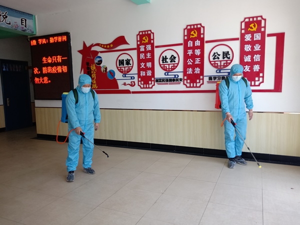 演练进行了充分的准备工作:一、召开全体班子成员、初三全体教师和宿管教师会议,张家驷校长在会上对疫情防控演练工作做出严密部署,要求大家认真严肃对待,确保本次演练工作有序进行;二、在学校门口摆放疫情防控宣传资料、流程图以及安全就餐指南等,加强疫情防控的宣传力度;三、加强防疫物资准备,保证防疫物资充足;四、校园全方位消毒,针对学生比较集中的教室、楼道、餐厅、宿舍、厕所等进行全面消毒。