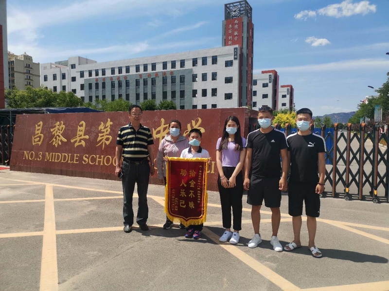 6月15日上午,失主庞志恒一行三人来到昌黎三中为初一八班孙焕然同学当面送上了感谢的锦旗,锦旗上书 "拾金不昧助人乐己" 。昌黎三中主管德育副校长贾鹏海和孙焕然同学的班主任马老师负责接待了失主一行。锦旗的背后是一个阳光少年拾金不昧的感人故事。