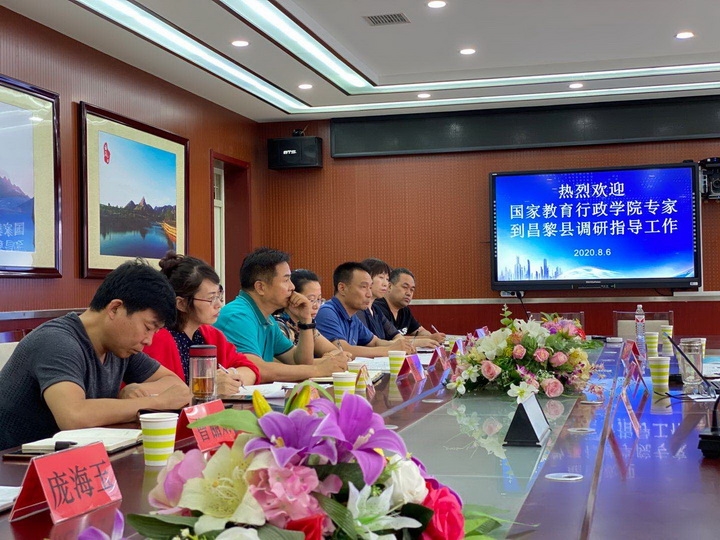 2020年8月6日,国家教育行政学院一行4人在远程培训中心业务副主任侯国文的带领下赴昌黎县开展培训需求调研工作,昌黎县教育和体育局局长曹庆华、工会主席邢秋枫、人事股股长钱焕香、师教股股长邸安、教师发展中心主任龙江平全程陪同。