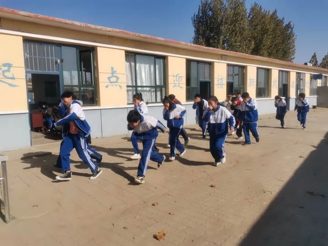 2020年11月9日上午,崖上初级中学开展消防安全演练活动。