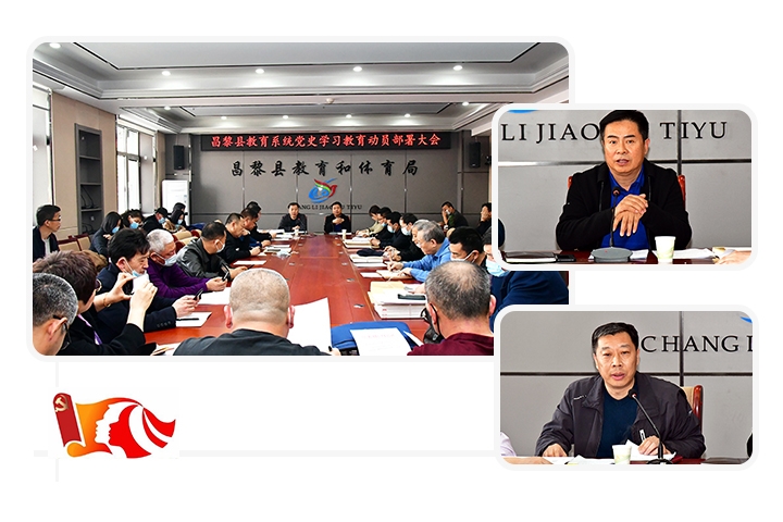 2021年3月22日,昌黎县教育系统党史学习教育动员部署大会如期召开。会议由教育工委副书记陈胜杰主持,教育工委书记曹庆华发表动员讲话,全县教育体育系统各单位党组织一把手共计40余人出席会议。
