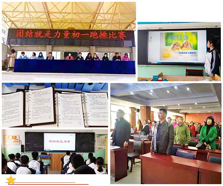会议尾声,全体领导教师起立,合唱《团结就是力量》,在歌声中感悟团结,凝聚四中力量。教师抄写习近平总书记给平山县西柏坡镇北庄村全体党员的重要回信,撰写学习心得体会;利用国旗下讲话集中对广大师生进行 "团结就是力量" 主题教育;利用大课间,开展主题为 "团结就是力量" 跑操比赛,通过比赛的形式,让同学们感悟团结的力量;召开以 "团结就是力量" 的主题班会,使学生明白,团结力量大,学会弘扬团结的精神。激发了学生的团队意识,关心热爱班集体。昌黎四中全体师生团结一心,共创四中辉煌!(信息员:赵金梅)