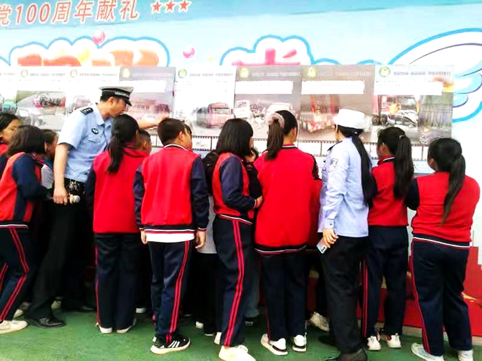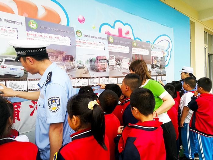 随后,还组织同学们观看了交通安全宣传画,三位警官现场为同学们普及交通安全知识。