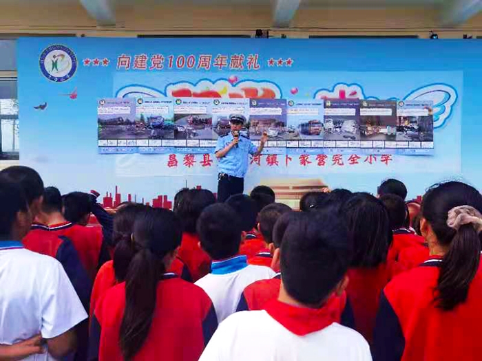 为进一步加强学校的交通安全教育工作,提高广大师生的交通安全意识,预防和减少涉及学生的交通事故的发生,2021年6月10日下午,昌黎县公安局交通管理大队三中队协警鲁连重一行三人走进大蒲河镇卜家营完全小学,为孩子们上了一堂交通安全宣讲课。