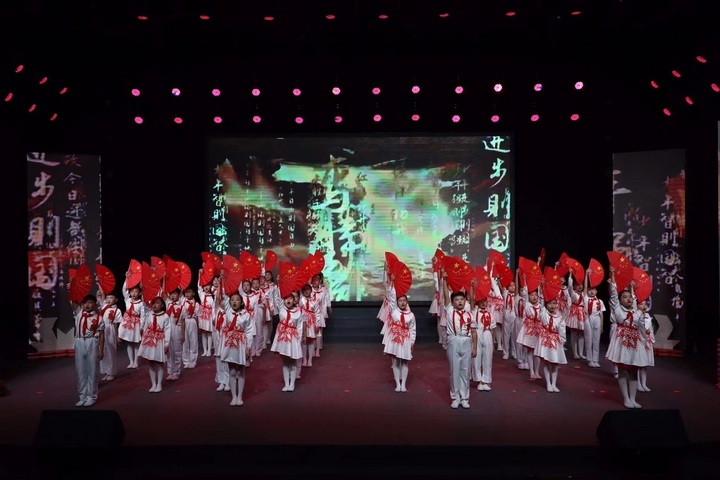 9月28日,昌黎镇第二完全小学52名学生代表全县小学生在广播电视局演播厅参加了县委宣传部和组织部举办 "百年赤旗映五峰" --昌黎县 "献礼建党百年 共庆祖国华诞 " 诵读活动。从接到上级领导任务到登台演出只有短短的十个工作日的时间,时间紧任务重,指导老师和孩子们争分夺秒地排练。经过刘玉玲和赵静两位老师十天的精心指导,孩子们精彩演绎了梁启超先生的散文《少年中国说》,博得了在场观众阵阵掌声。舞台上孩子们精神饱满、情绪激昂,铿锵有力的诵读声响彻天宇…… "今日之责任,不在他人,而全在我少年!" 张张童真的小脸上写满了浓浓爱国情和拳拳报国志。