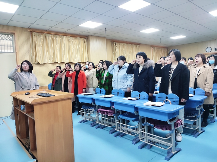 不忘教育初心,牢记育人使命。在赵静主任的带领下,全体八里教师紧握右拳,立下 "做有理想信念、有道德情操、有扎实学识、有仁爱之心的′四有′好老师,为教育发展、国家繁荣和民族振兴努力奋斗" 的铮铮誓言。