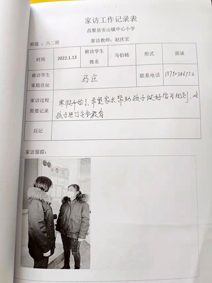 昌黎县安山镇中心小学全体教师都参与到此项工作中,争取把关爱送给每一位学生。由于疫情影响,家访的主要形式改为微信和电话。老师们通过微信和电话和家长进行了良好沟通,在家访中,老师们着重表达了希望家长加强对学生安全的监管,同时针对不同的孩子也进行了假期活动的关心和贫困资助政策、 "双减" 政策的宣传等,帮助家长树立正确的教育理念。
