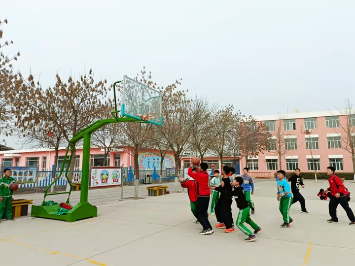 2022年3月11日上午,安山镇牛栏小学和总屯小学的篮球运动员及教练一起来到昌黎县安山镇中心小学进行了一次篮球联赛。