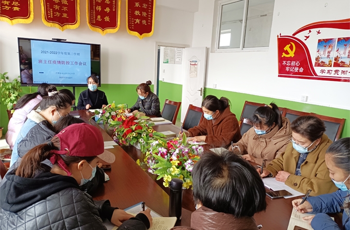 2022年3月22日,昌黎县安山镇中心小学在小会议室召开了班主任疫情防控会议。