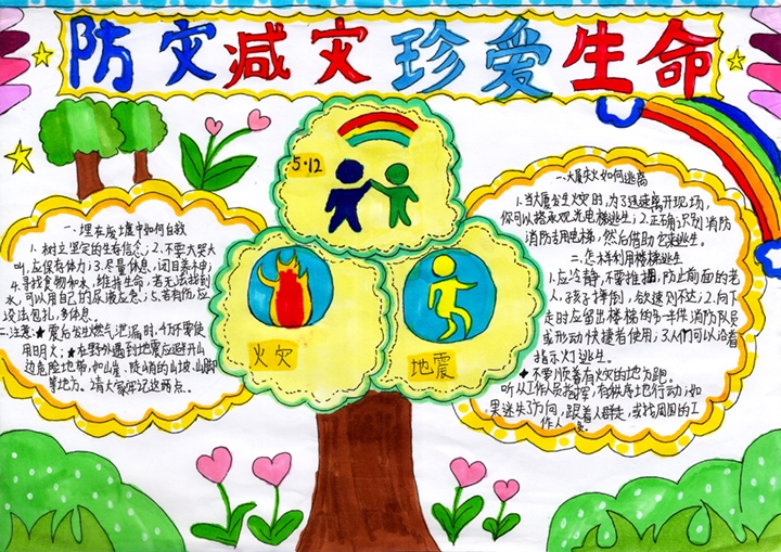三、各班举办了防灾减灾手抄报比赛,让学生能够从中学到相关安全知识,提高应急和自救能力。