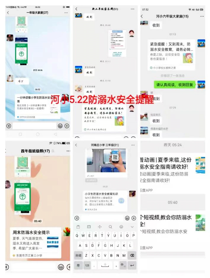 四、强化联防联控。一是通过制发防溺水《致家长一封信》、签订《防溺水承诺书》、家访、微信群等多种形式加强对学生家长的宣传教育,提醒督促家长切实履行监护责任,时刻关注孩子,做到 "四个知道" 。二是主动加强与属地党委、政府、村(居)委会及相关职能部门的沟通联系,配合做好辖区内水库、水渠、河道、坑塘、采砂坑等危险水域安全警示标牌、防护栏、警戒带等防护措施的安装工作,部门协调联动,织紧编牢中小学生溺水 "防护网" 。