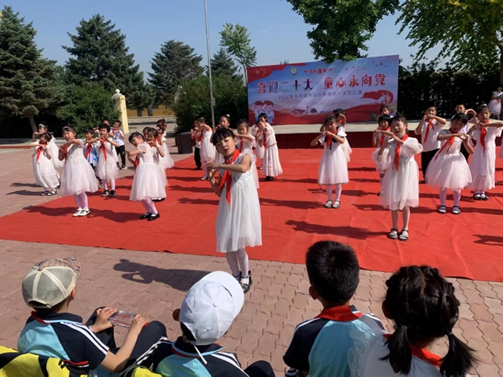 在鲜艳的五星红旗下,冯涛校长首先对全体少先队员作了热情洋溢的讲话,深情地向同学们致以节日的祝福和日后的期许。文艺汇演中,全校一至六年级各班在辛苦彩排过后展现出最佳的一面,活动中小演员们身着节日的盛装歌唱着、舞动着……舞蹈、T台秀、劲爆音乐剧、诗朗诵、舞台剧等才艺展示好戏连台,精彩纷呈。小观众们个个兴高采烈,合着欢快的音乐,台上台下互动,掌声不断。校园里处处洋溢着庆祝 "六一" 儿童节的欢乐气氛,鲜花与笑脸相映,歌声与笑声齐飞,整个校园成了一片欢乐的海洋。