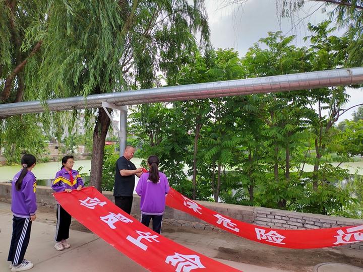 宣传小分队队员在校领导和老师的带领下,张贴了警示标语,悬挂了宣传横幅,同时对坑塘路段进行了巡查,排除了安全隐患。此次宣传活动让学生亲身参与,亲自动手,以此带动更多的学生认识到了溺水的危害性,从而远离坑塘,珍爱生命。