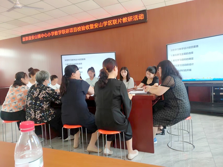 昌黎县安山镇中心小学于2021年春季参加了昌黎县教师发展中心联合中国教师研修网启动实施的 "指向核心素养的小学数学教师教学能力提升" 项目。三个学期的教研活动接近尾声,安山镇中心小学作为安山学区教研活动的主阵地,特于2022年6月17日上午在安山镇中心小学多功能厅举办了安山学区数学学科联片教研活动,全镇共计27人参加了此次活动。