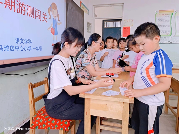 为落实中央 "五育并举" 教育方针和 "双减" 政策,让期末测评更符合低段学生的年龄特点和心理需求,促进学生身心健康发展,让测试形式多样化、评价方式多元化、学生心理健康化,6月21日、22日,马坨店乡马坨店中心小学一年级举行了一场无纸笔测试活动。测试别开生面,学生收获满满。