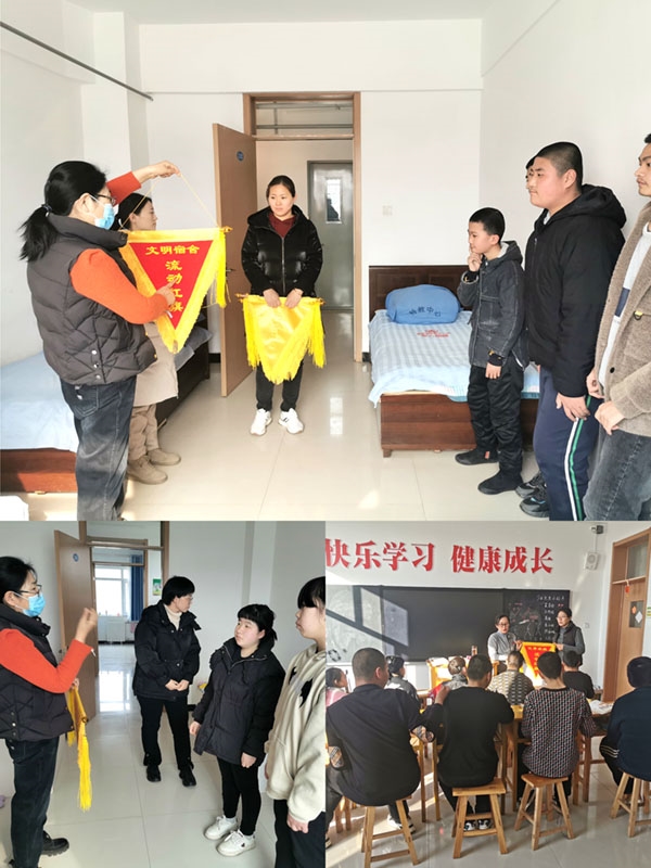 为了进一步促进学生行为规范的养成,培养学生的集体主义精神,形成良好的校风、班风,以及表达对班主任辛勤工作的肯定,特殊教育中心在全校范围内开展了 "优秀班级" 、 "文明宿舍" 监督检查评比活动。为此学校成立了卫生专项小组对每个班级和宿舍的卫生情况进行了月评比,本次共有两个班级荣获 "优秀班级" 称号,三个宿舍荣获 "文明宿舍" 称号。在2023年2月28日上午举办了优秀班级、文明宿舍授旗仪式,由德育处郭主任为获奖学生颁发了 "流动红旗" 。
