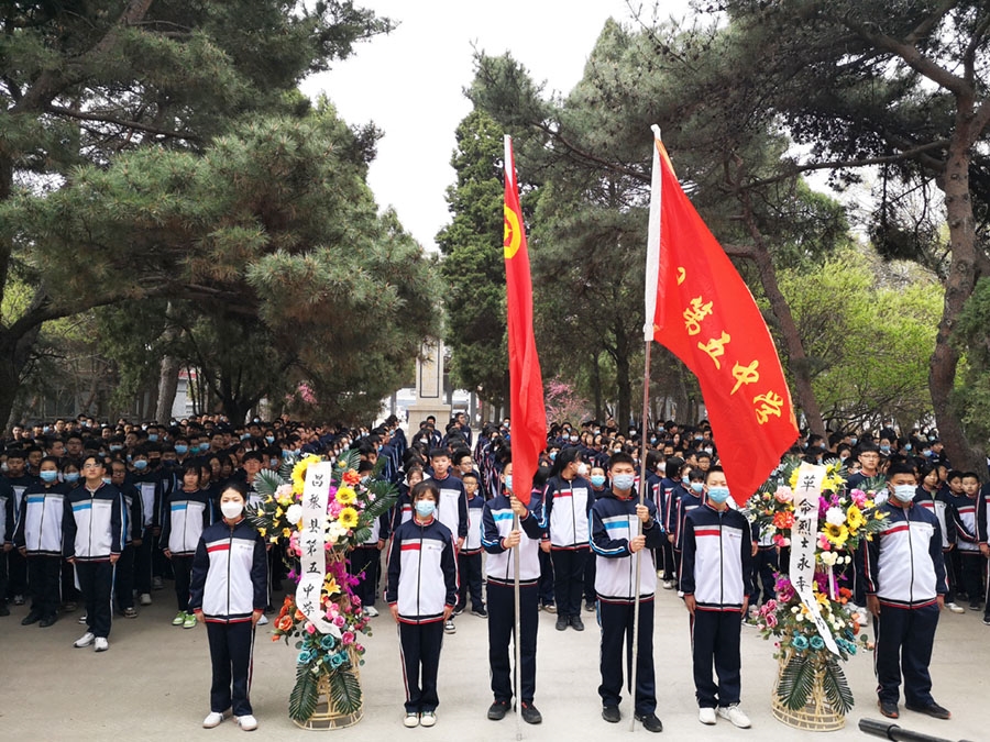 2023年4月3日上午10点,昌黎五中初一、初二全体师生怀着沉痛的心情,前往烈士陵园开展 "缅怀革命先烈,弘扬爱国精神" 清明祭扫活动。本次活动中,学生向革命先烈表达了沉痛哀思,立志要勤奋学习,努力成才,牢记烈士遗愿,用自己的才智为祖国的发展做出自己的贡献。