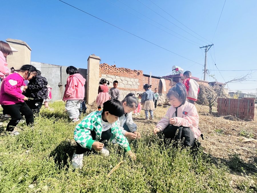 孩子们在老师的带领下,来到了美丽的田野,观察了绿油油的麦田,看到花儿竞相开放,寻找到可以食用的野菜,不仅感受到春天的变化,还用自己的语言、动作表达春天的美丽景色,在说和做的过程中体验到与了老师、同伴共同活动的快乐。