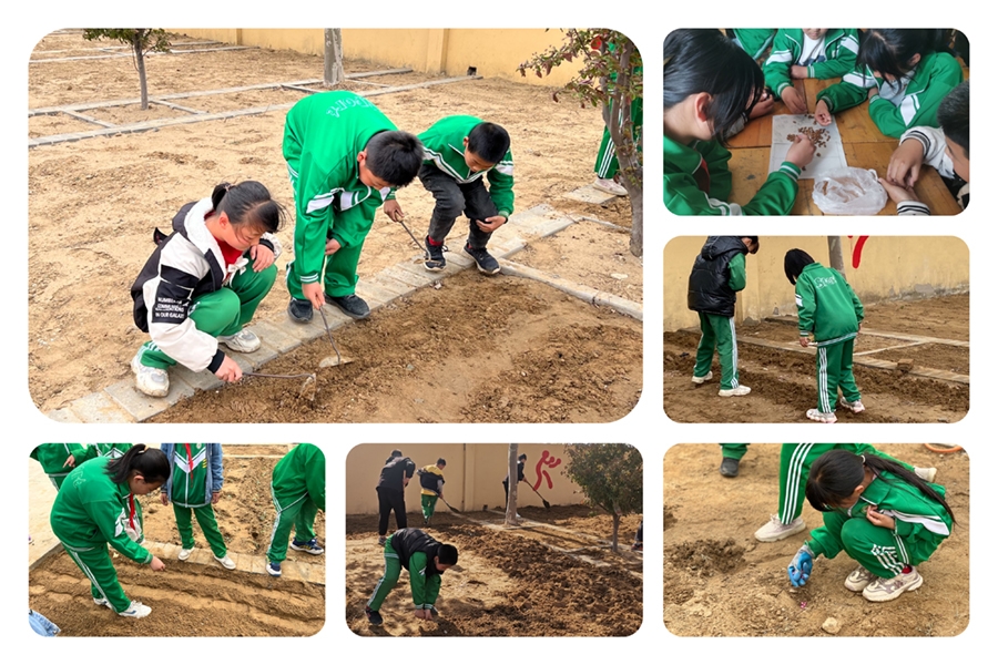 才学勇校长在班子会议上强调了此次春耕种植活动的重要意义,学校精心组织安排,对劳动教育基地区域、种植项目进行划分。活动前期,以班级为单位,通过劳动课,班主任向同学们介绍了植物如何生长、怎样播种、如何使用劳动工具、组建播种小组及注意事项等内容,让学生明确自己的任务。在老师的指导下,同学们播下了一颗颗希望的种子……