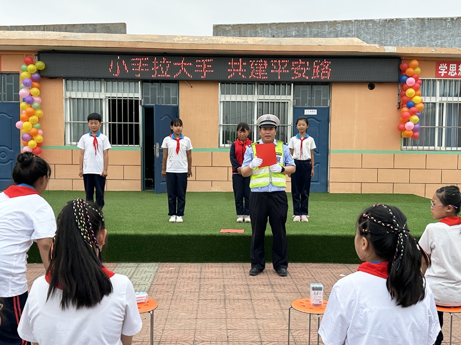 为宣传交通安全知识,提高小学生的交通安全意识,让小学生知危险会避险。2023年5月30日下午,河北省公安厅高速公路交通警察总队秦皇岛支队昌黎大队办公室主任董宏波、指挥中心主任韩峰来到昌黎县解官营完全小学,在操场上开展了一堂 "小手拉大手,共建平安路" 讲座。 交警为师生讲解了交通参与过程中的危险行为,如何辨认交通标志和交通指挥手势,教会同学们在出行过程中如何远离危险隐患,发生危险后应该掌握哪些自救常识等。