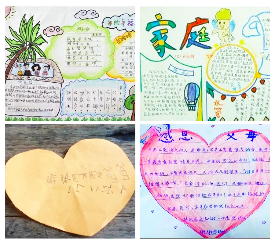 活动中,王校长在晨会讲话上对全校学生进行了教育宣传,告诉学生们,学校也使另一种意义上的家,是全校师生共同生活、工作、学习的家。在主题教育活动中,学校将 "我爱我家,感恩生活" 主题活动融入到各学科中,在语文课上教师组织学生们开展了 "我爱我家" 演讲活动,学写感谢信活动,感谢信中的每一个字里行间都流露出的是孩子对家的爱,对爸爸妈妈的爱;组织学生制作爱心卡、主题手抄报等,孩子们通过亲自动手,用一句句淳朴的语言和一个个感人的画面来表达自己爱家之情。