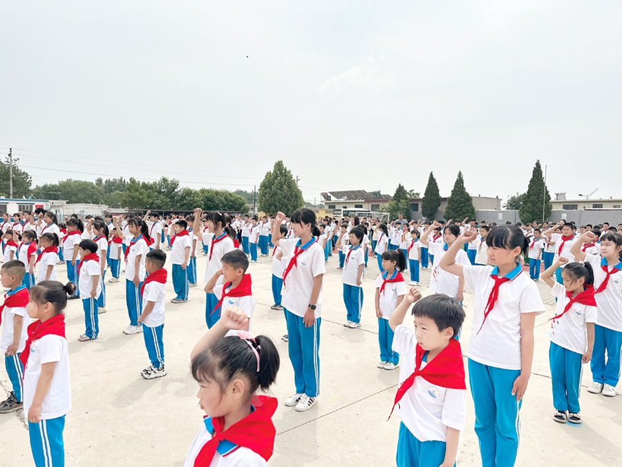 2023年5月31日上午,龙封台完全小学举行 "红领巾心向党 队旗伴我成长" 一年级第一批少先队员入队仪式,欢迎一年级的小朋友光荣加入中国少年先锋队组织。