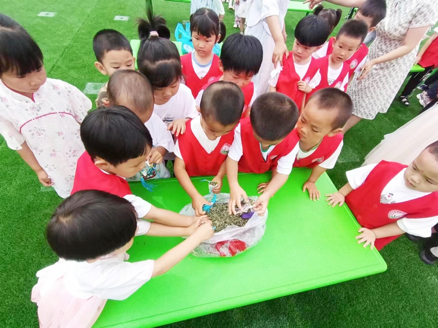 活动伊始老师为孩子们介绍了有关端午节的知识,孩子们了解了端午节的由来,感受到我国古代诗人的爱国情怀,并且知道了端午节这天的一些习俗;接下来的室外活动更加有趣,孩子们亲自参与活动,品味端午文化,老师们组织孩子们踩艾草、沐兰汤、画额面、射五毒、赛龙舟、做香囊,一系列活动下来,浓浓的端午节日气氛达到高潮;最后的话端午活动,更是让孩子们将端午节这一传统节日的文化精髓内化进孩子的心灵!