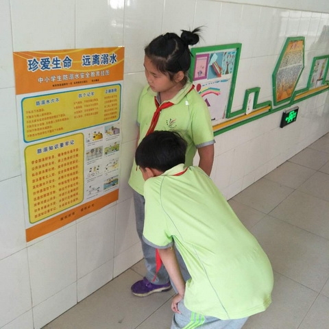 四、主题班会再强调。各班分别进行了《珍惜生命 防止溺水》主题班会。班会课上,各班通过形式多样的环节向学生介绍了预防溺水的基本常识;观看安全教育平台的相关视频,通过一个个鲜活悲惨的实例和触目惊心的数据,告诫全校同学要高度重视预防溺水;另外,各班主任通过问答等方式,向学生介绍了游泳的注意事项、如何预防溺水和溺水救护方法等安全知识。同时,各班级在教室外侧墙壁分别粘贴防溺水宣传挂图各两张;利用黑板报或组织制作手抄报,同步宣传防溺水安全常识。