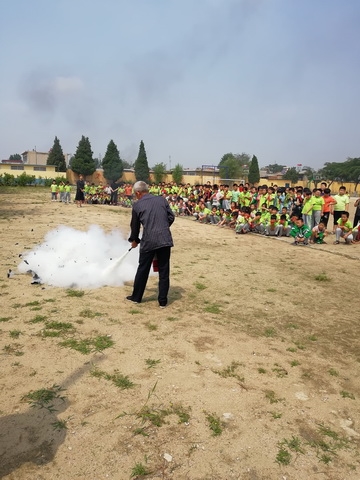 急促的警报声拉开了 "消防安全疏散演练" 活动的帷幕,听到警报声,各位老师立即到达指定岗位,指导学生快速疏散,各班任课教师带领学生弯着腰,用湿毛巾、衣袖等捂住口鼻,沿着学校指定楼梯口快速前进,有序撤离到学校操场的安全地带,整个过程历时3分04秒。随即各任课教师清点人数,并层层向上汇报。全校师生全部安全疏散完毕后,卢云生校长做了重要的点评。卢校长称赞本次演练的成功,切实增强了师生们的消防意识,提高了老师们处置突发事件的能力,检验了学校应急疏散预案的可操作性与实用性,锻炼了学生科学的逃生、求生存的能力。随后,卢校长为学生讲解了灭火器的使用方法,主管科学实验的龙胜林老师为学生做了用灭火器灭火的现场演练,操场上呼声一片。