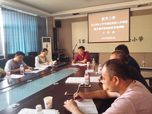 8月2日,昌黎县教育工委2018年上半年基层党建工作调度会暨乡镇学校党组织设置调整工作会在昌黎六小召开。教育工委下辖的21个党组织书记及11个涉及党组织设置调整的乡镇学区负责人参加了会议,会议由教育局党政办公室主任康小玉主持。