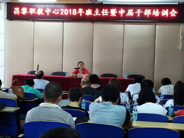 8月14日至15日正值暑假期间,昌黎职教中心举办了2018年班主任暨中层干部培训会,全校班主任老师及中层以上领导70余人到会参加培训,政教处主任秦国涛主持会议。