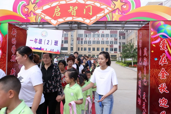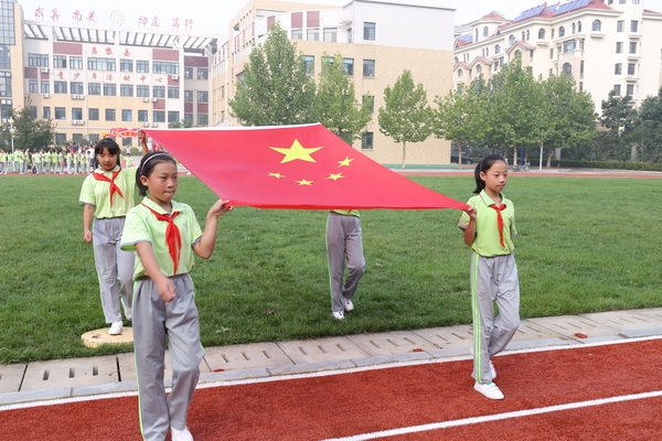 愉快的暑期已经结束,金秋九月,雨后清新爽朗,2018年9月3日,八里庄完全开展了主题为 "爱在金秋 相约八里" 开学迎新礼活动。新的学期,同学们也一定发现了我们校园也发生着变化,教育局投资新建的操场绿草如茵,老师们提前整理的教室宽敞明亮,学校精心打造的科普馆耳目一新。八里庄小学迎来了180多名新同学,他们由启智门步入会场,同学们的脸上都洋溢着喜悦的笑容,心中都充满着激动。全体同学热烈欢迎新同学的到来。庄严的升旗仪式,活力四射的啦啦操表演之后,魏校长给全体同学上 "第一节课" 。