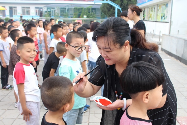 随后,刘校长带领学校领导和一年级的全体老师为新生 "点朱砂启智" 。点点火红的朱砂,开启了孩子们的智慧大门。在今后的人生道路上,孩子们将运用自己的聪明才智去创造一个又一个奇迹。