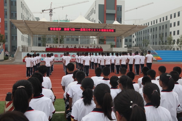昌黎三中历来重视新生军训工作,坚持把军训作为新生入学的一门必修课。9月14日下午3点半,昌黎三中全体初一新生军训成果汇报会在学校操场举行。校长齐冠军、副校长苏仁和、刘春明、贾鹏海、党总支副书记闫立全、工会主席杜小波等与教官指导员共同观看了此次军训汇演。