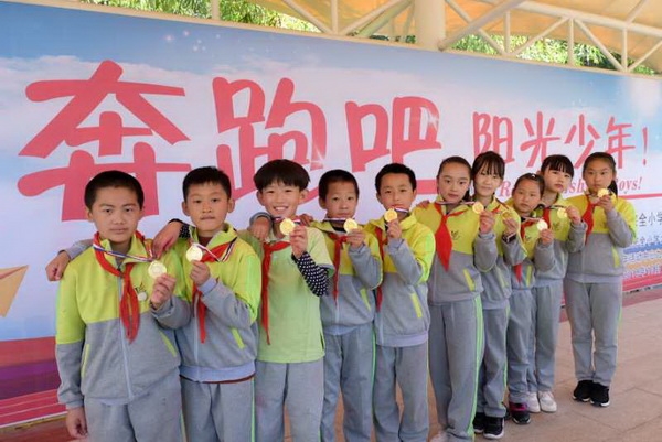 本次运动会设置 "十人十一足" "无敌风火轮" "抢滩登陆" "毛毛虫" "百米趣味接力" 五项团体比赛项目,分一年级组、二年级组、中年级组、高年级组四个组别共596名运动员参赛。单项获得第一名颁发学校特制金牌,四项总分第一名颁发 "优胜红旗" 。获得优胜旗的班级为一(1)班、二(1)班、四年级、五年级。运动会整场欢声笑语,孩子们为荣誉而战,家长们积极配合,团队协作、共同努力,有汗水,有欢笑;有泪水,有鼓励 ;友谊第一,比赛第二!特别感谢家长们的支持!