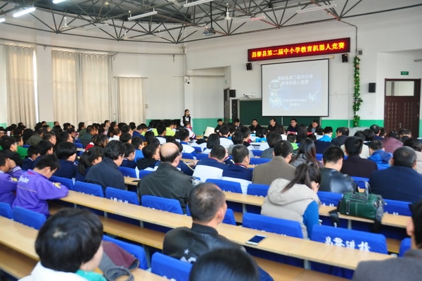 开幕式上电教站站长陈永平致辞,简明扼要地总结了我县教育机器人发展现状及取得的成绩,对竞赛裁判员提出了具体要求。市电教馆邢馆长发表讲话,分析了信息全球化及人工智能的发展现状,强调了教育信息化及科技创新教育在基础教育教学中的重要地位,指出了机器人与创客教育在高校自主招生及中、高考综合素质评价中的作用,对我县机器人与创客教育取得的成绩、电教站的工作给予了充分的肯定。县教育局副局长史学锋宣布此次竞赛的开幕。