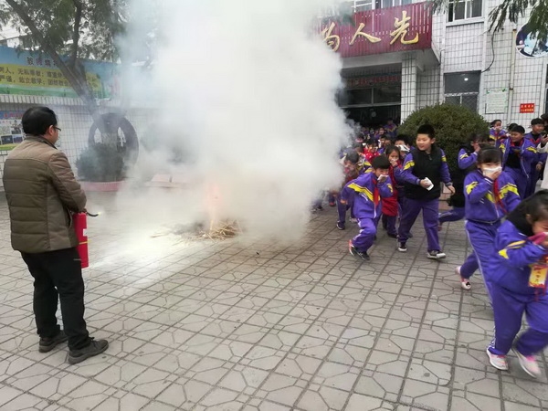 2018年11月8日,间操时间,广播警报组、疏散组、救护小组等各个岗位教师到岗,一切准备就绪,在郑老师三短一长的紧急笛声后,全校师生自上而下有序撤离。只见,同学们用打湿的毛巾捂住口鼻,在班主任老师的带领下,猫着腰,贴着墙,迅速有序撤离,没有惊慌,没有拥挤,到学校门厅起火点处,负责老师指挥撤离,常伟老师和孟老师用灭火器将着火点喷灭。所有学生全部撤离出教学楼共用时2分50秒。展示了师生应急的快速反应能力和正确应对的能力。