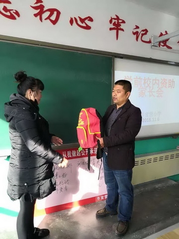 此次活动由校长刘建伟主持,副主任尹宝军,班主任刘进伟参与,首先由刘校长主持了家长会,在会上对每位家长宣传国家及学校贫困生资助政策,并详细了解家庭基本经济状况、生活情况以及学生在家表现,同时,为贫困生带送上了书包以及全套的学习用品,和孩子们都喜欢的玩具,以解决贫困家庭的生活困难。由于家庭生活困难,孩子们平时都没有像样的书包和玩具。面对着校长和老师带来的东西,一个个孩子都笑开了花。校长也鼓励受助学生要克服困难,勤奋学习,感恩父母,回报社会。(信息员:陈洋)