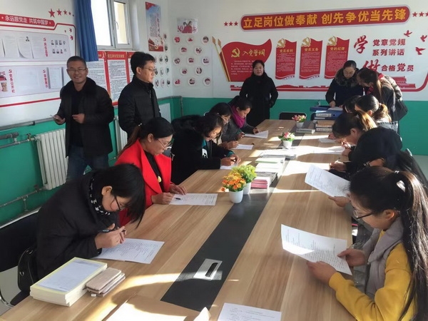 为了进一步普及宪法基本常识,营造良好的宪法学习氛围,由齐靖局长带队,教育局领导以及葛条港中心校领导对牛官营小学教师进行宪法知识考试。教育局精心制作宪法知识考试试题,所有教师考试前都积极学习宪法知识,11月29日上午,宪法知识考试顺利完成。本次考试中校领导积极配合,积极组织老师参与此次考试。本次宪法知识考试,极大的激发了老师们学宪法的积极性,更好的普及了宪法知识,尤其是加深了老师们对宪法修正案的认识,在牛官营小学营造了良好的宪法学习氛围(信息员:陈洋)