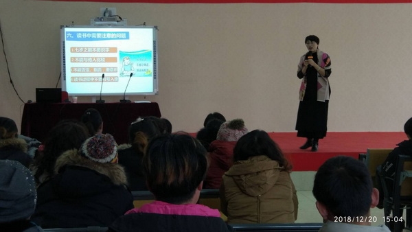 在刘台小学的会场,教育局工会主席邢秋枫针对该校情况,向幼儿园家长讲解了《让孩子爱上阅读》。邢主席从绘本的选择、怎样培养幼儿读书能力、幼儿良好习惯的养成等方面与家长互动交流,帮助家长从小培养孩子正确做人、做事,快乐成长。邢主席的讲解使许多家庭解开了困惑,他们有心培养孩子养成阅读的习惯与兴趣,可就是不知如何去做。通过今天的讲解他们知道了家庭教育的重要性,家长要参与孩子成长的每一个时刻。