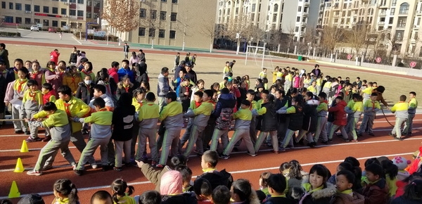 为迎接2019年元旦的到来,丰富同学们的课余文化生活,进一步提高各班同学的团队合作能力和凝聚力,促进各班之间的交流,为本校同学提供一个锻炼的机会和展示集体风采的平台,2018年12月26日,八里庄小学全体师生在校园操场举行了一场热热闹闹的拔河比赛。