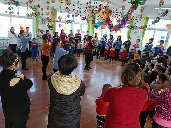 活动开始前,园长张艳霞首先对全园师幼及家长致新春贺词,对这一年来家长的支持配合、老师的辛苦付出表示感谢;对今后孩子们的成长给予殷切希望。活动中,教师和孩子们一起编排了内容丰富、形式多样的节目,有引人入胜的故事、悦耳动听的歌声、精彩的舞蹈;还有家长自发组织排练的亲子表演,每个节目都博得大家的阵阵喝彩。台上台下师幼互动、亲子互动,他们默契的表演使活动现场掌声雷动,欢声笑语不绝于耳。孩子们在本次活动中感受到浓浓的节日气息,展现了自我,在快乐、健康的氛围中喜迎新年的到来。(信息员:王蕊)