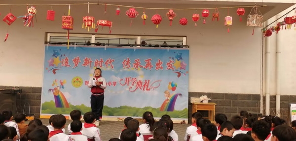"我们是喷薄的朝阳,我们是祖国的希望,每一个生命在刘台小学精彩绽放……" ,开学典礼在学生齐唱校歌《生命初绽》中拉开了序幕,孩子们用专注的眼神、认真的态度向大家表示: "新学期,我们已经准备好了" !接下来,由王艳红校长致词,她充分肯定了过去的一个学期全体师生所付出的努力以及获得的成绩,并对新的学期提出了新的愿景:希望每一位老师、每一位学生都来做一个幸福的人,做一个让周围的人也感到幸福的人,刘台小学的每一位师生都要做追梦人,追梦前行!已有30年教育生涯的高文香老师表示: "梦想是一份向往,也是一份坚持,更是一份拼搏" ,让全体师生对梦想又有了深刻的理解。青年教师张立青说: "作为一名教师,曾是她的梦想,现在梦想实现,那些幸福感只有拼搏过的人才能深刻体会,接下来她的梦想是想做一名出色的小学教师,并在追梦的路上辛苦并快乐着" 。两名学生代表也谈了自己的梦想,李雨珊同学希望每个同学都投入到运动中去,拥有一个健康的身体,为追逐梦想加油助力;高俪宁同学告诉大家:读书拓宽了自己的视野,希望同学们畅游书海,圆梦 "悦" 读。结合主题,五年级二班的6名同学表演了诗朗诵《追梦中国梦》,三年级二班的全体同学还为大家带来了手指舞《中国很赞》,为了能够让同学们以最饱满的热情投入到学习和生活中,学校领导还为每个班级送上了亲手书写的对联,让学生们在这喜庆、愉悦的氛围中,不忘使命,树立梦想,开启新的篇章。