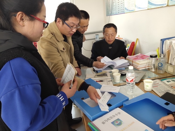 检查组一行来到前马坨小学对学生资助档案、学籍档案进行检查。特别是对建档立卡家庭经济困难学生资助政策落实情况、资助政策宣传、学生资助工作监管情况、资助资金发放情况、控辍保学工作等档案进行了详细检查,并对前马坨小学开展的学生资助工作进行了意见征集和指导。