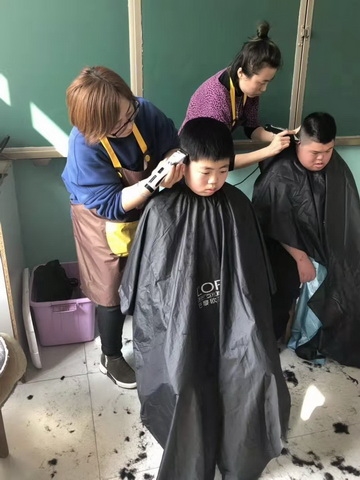 2019年3月4日一大早,来自昌黎县咪啦咪咔儿童美发的四位爱心人士来到特殊教育中心开展 "学雷锋献爱心" 活动,为残疾学生提供义务理发志愿活动。学校主管德育工作的郭秀清主任热情接待了志愿者们。