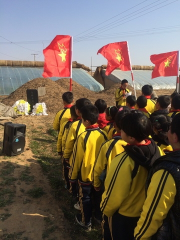 又是一年清明时,四月二日上午九点,大林上完全小学全体师生满怀崇敬的心情迎着灿烂的阳光在马焕宝烈士墓前举行庄严的祭祀活动。学生们怀着无比崇敬的心情双手捧上花环放在先烈的墓前,少先队员代表许下了孩子们的诺言,坚定了他们为祖国而努力学习的决心;闫明权校长在活动中表达了他对革命先烈的缅怀和对学生的殷切期盼;村里的长辈向学生们讲述马焕宝英雄的事迹,学生们受到了很大的触动。斯人已去,正气犹存!听着学生们的谆谆誓言,相信他们会以实际行动来告慰先烈的英灵。